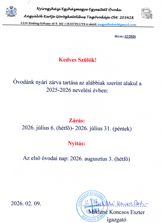 Óvodánk 2025.07.01.-2025-07-25.ig nagytakarítás, karbatartás miatt zárv tart!